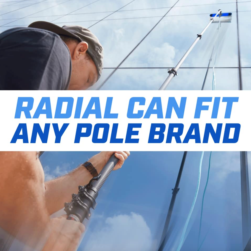 No matter your pole brand, you can fit RADIAL Brushes to any pole. REACH-iT - with our new handle / to pole quick change system (also available for all brand types like UNGER, EURO POLE TIP poles, GARDINER or even TUCKER,.)