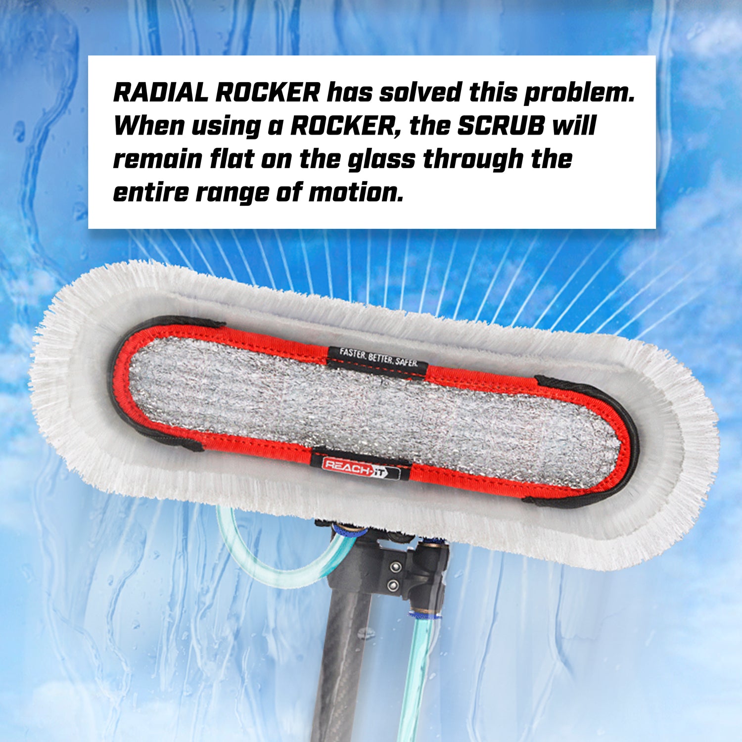 Maximum scrub power in every stroke. With the SCRUB PAD built inside the brush, agitation happens automatically. The RADIAL ROCKER’s 20º range of motion keeps the entire pad flat on the glass from top to bottom