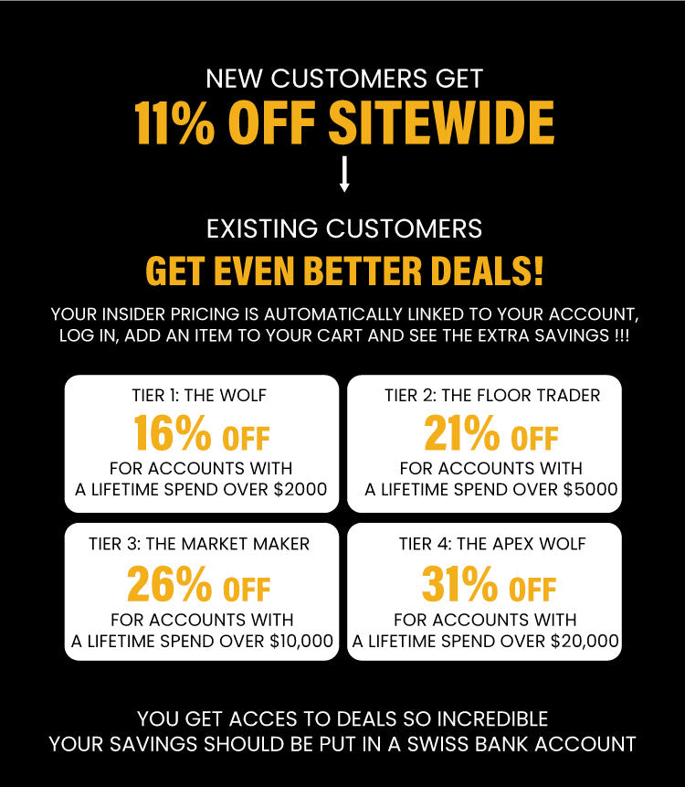 This BLACK FRIDAY you'll get the best deals the more you've shopped with us. The higher lifetime spend, the better the discount. Your discounts apply to the heavily discounted MAX DISCOUNTS!