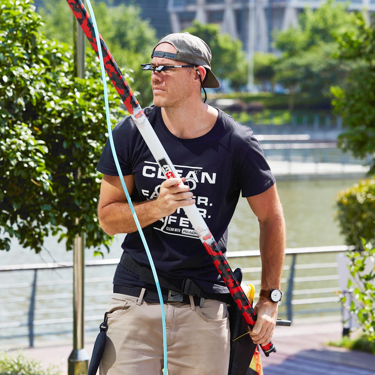 HI-FLO can be used along the ground for 75-150 FEET to have a more convenient delivery hose, AND up the pole right to the #1 clamp, or straight to your RADIAL brush!