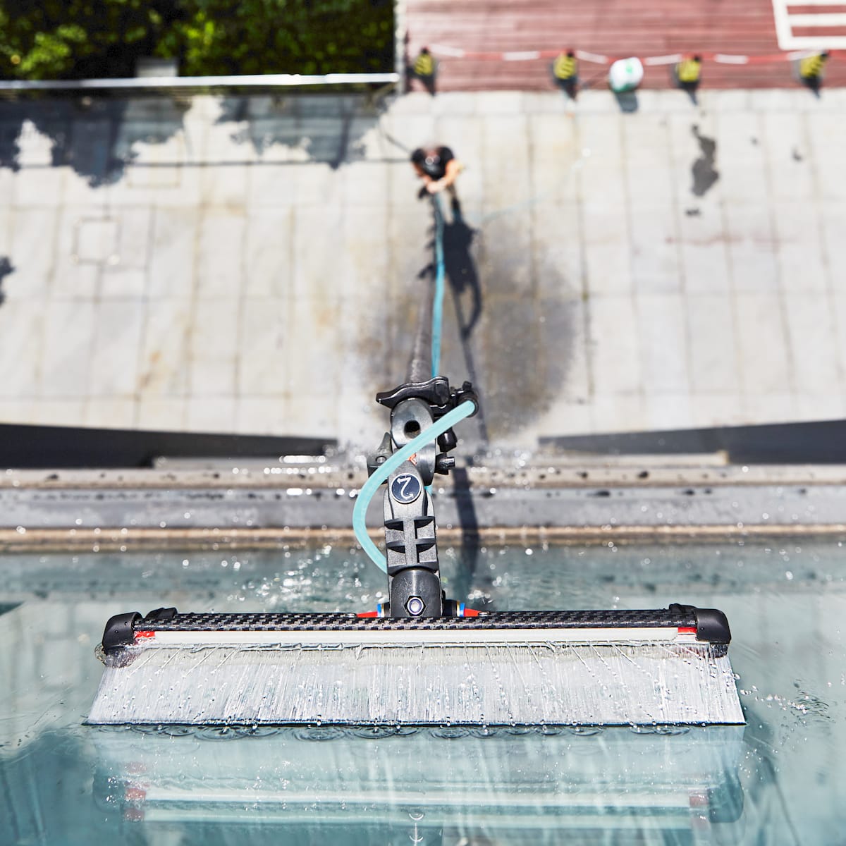 HI-FLO is designed for delivering more water to all RADIAL BRUSHES. We know categorically that you can USE LESS TIME by using more FLOW-RATE during the ON-GLASS-RINSE phase.  Overall, if you accelerate your work at a higher rate than the increase in flow-rate, you will actually USE LESS WATER VOLUME.