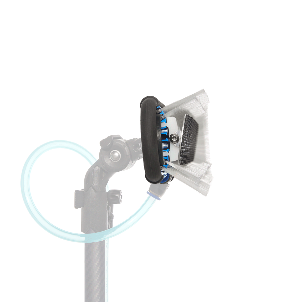 The ‘arc’ of bristles in the endcaps, are designed to be ‘rolled’ through the corners to dig out spider webs, nests, and debris with ease - the hardest aspect of water fed window cleaning (corners) is now solved with great efficiency for the Operator.