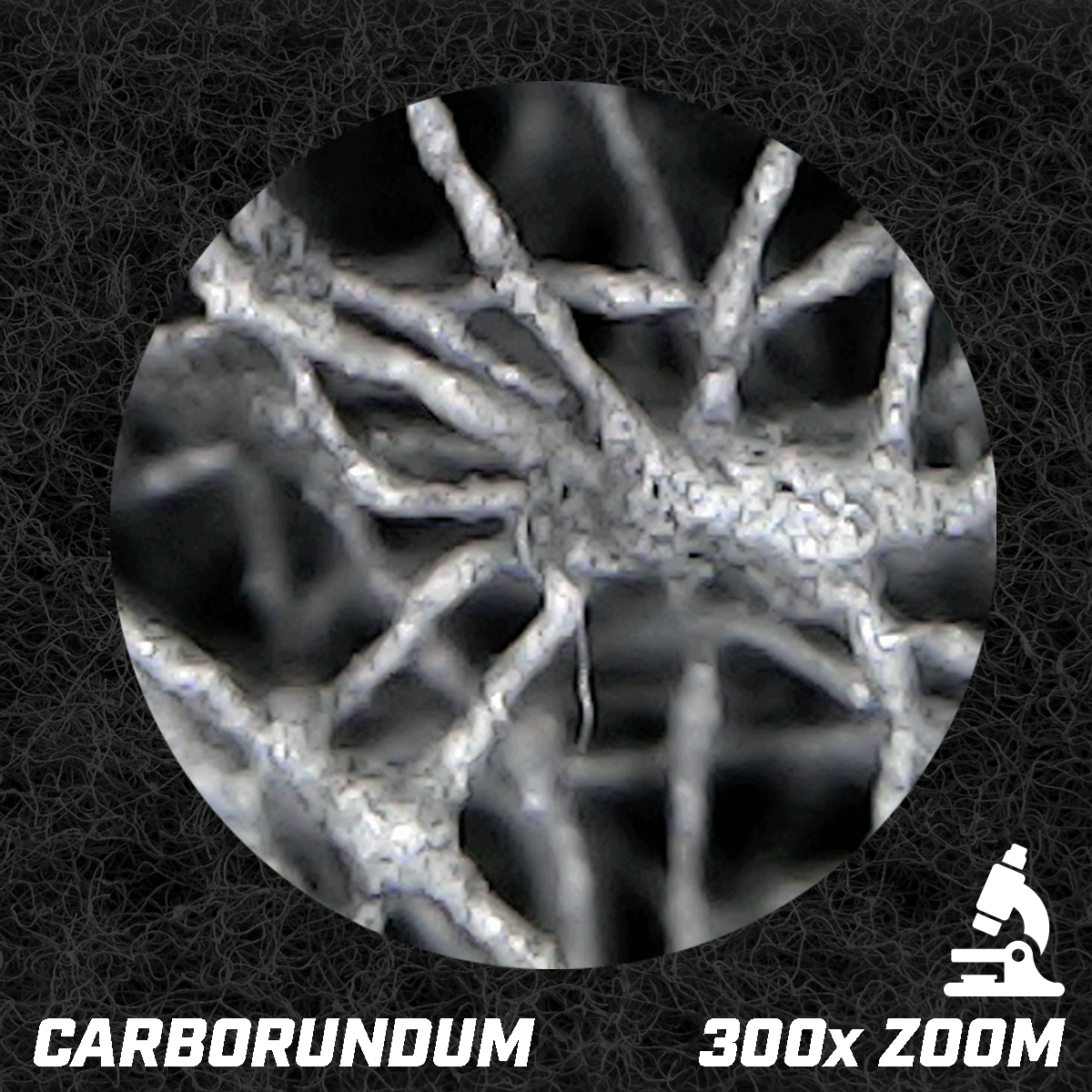 CARBORUNDUM : This is the most aggressive SCRUB only, and should be used only on standard glass - be careful on treated and special glass.